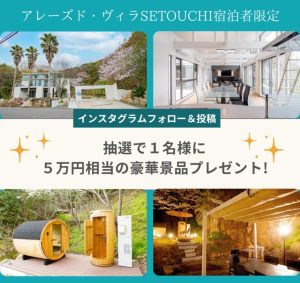※ハッシュタグ(#アレーズドヴィラSETOUCHI)と宿泊日の記載もお願いします